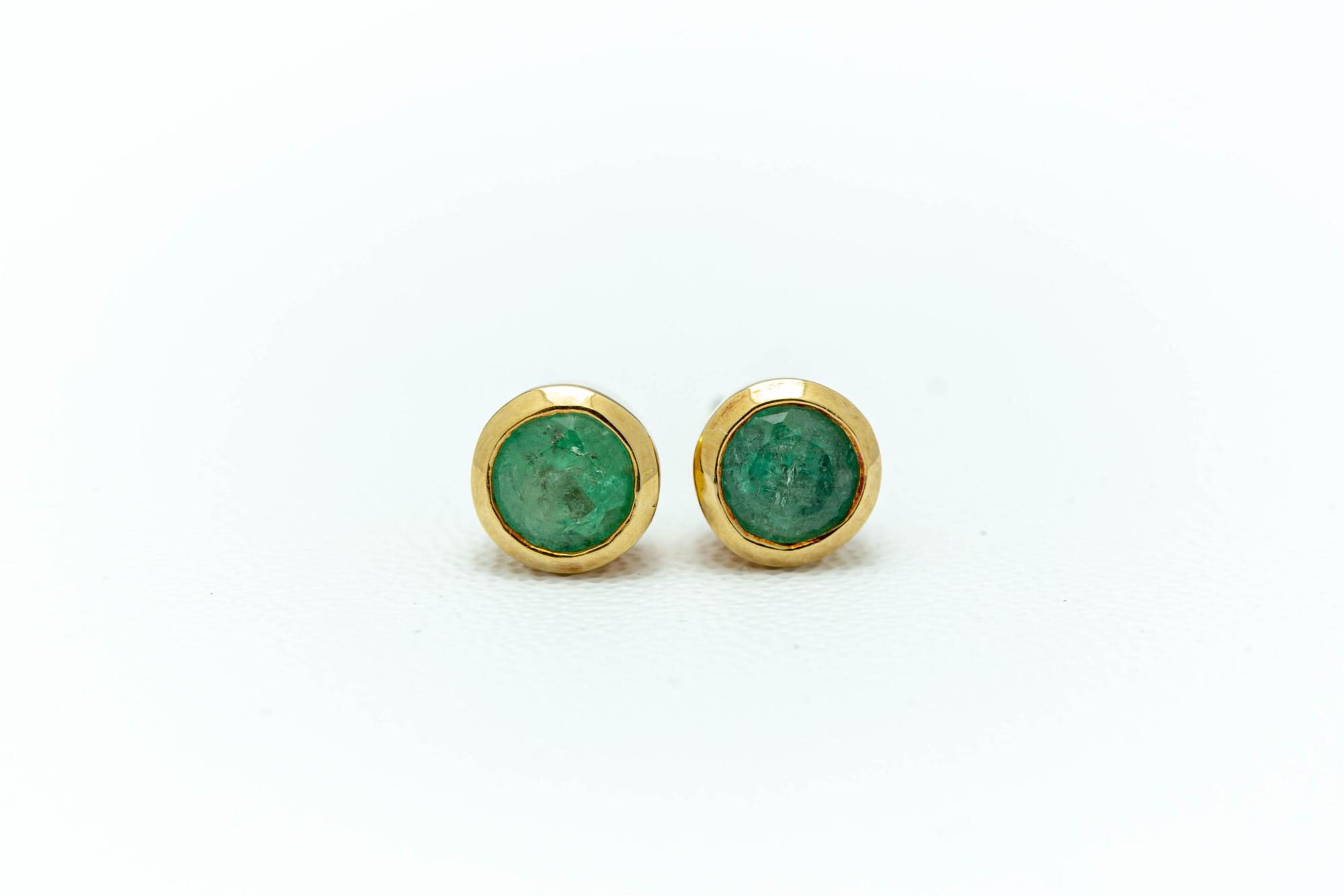 Aretes en Oro 18k Esmeraldas Rendondas en Bisel
