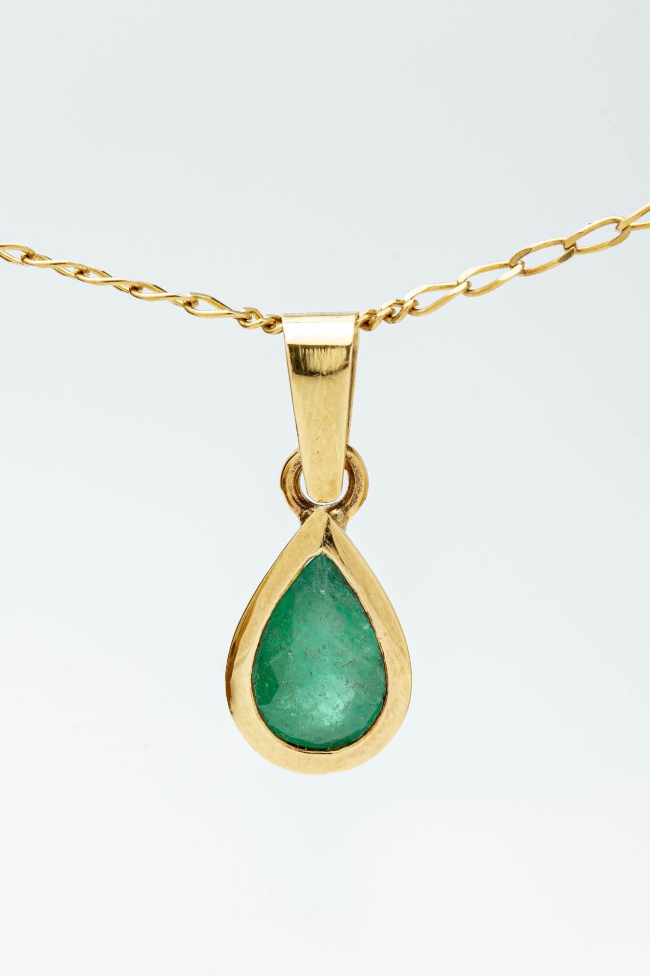 DIJE ORO 18K ESMERALDA LAGRIMA EN BISEL