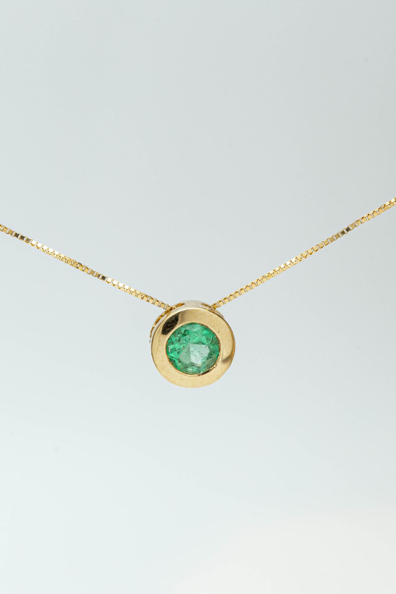 DIJE PASADOR EN ORO 18K ESMERALDA REDONDA EN BISEL